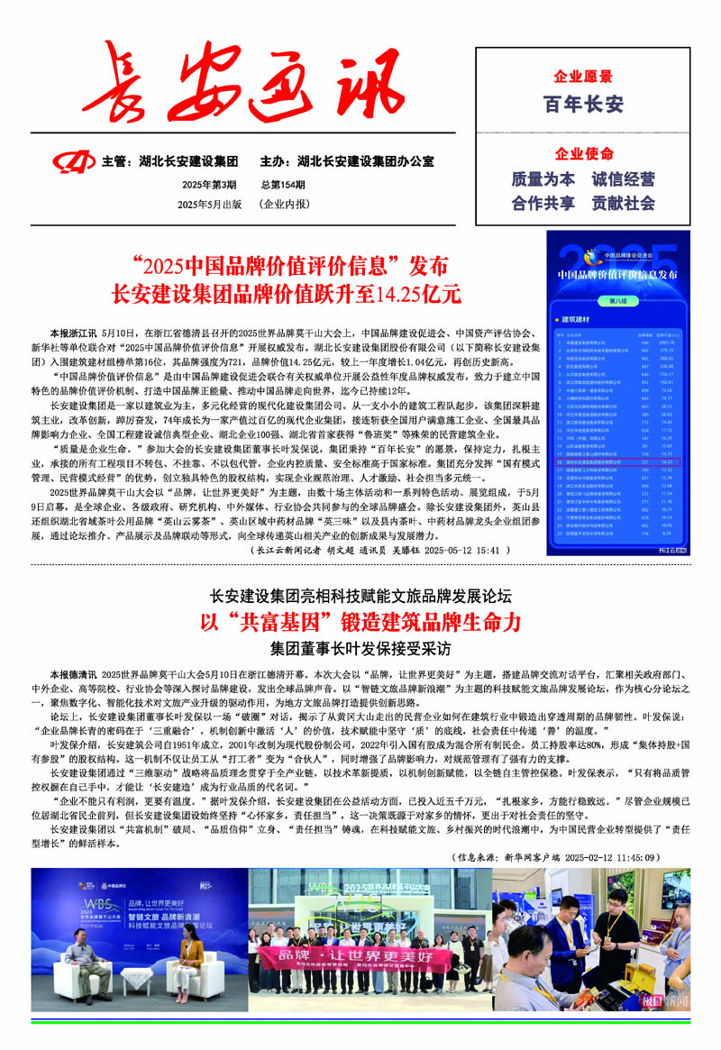 • 2025-05-13 湖北長安建設(shè)集團亮相科技賦能文旅品牌發(fā)展論壇: 以“共富基因”鍛造建筑品牌生命力